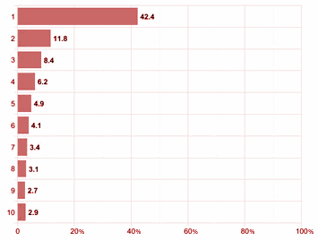 Il primo risultato viene scelto dalla maggior parte degli utenti, mentre il secondo quasi da 1/10 delle volte.