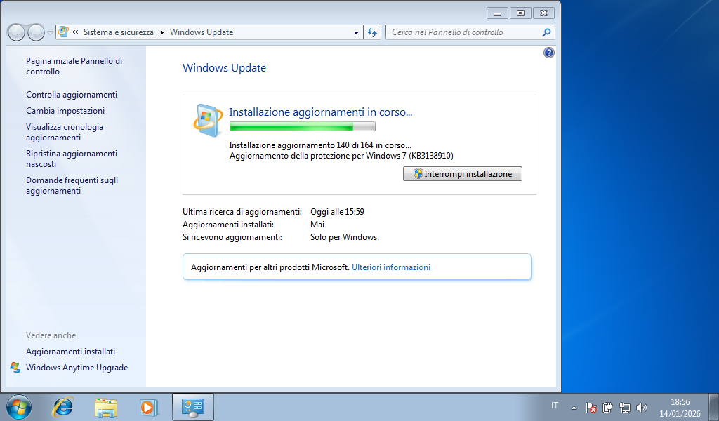 A questo punto si possono cercare nuovi aggiornamenti nella sezione Windows Update del pannello di controllo. In caso non compaia nulla, provare a riavviare il sistema e fare nuovamente una ricerca.