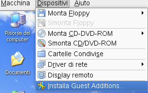Per installare le Guest Addition di VirtualBox è sufficiente avviare la virtual machine destinataria e tramite il menu Macchina scegliere la voce Install VirtualAddions.