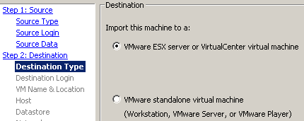 Importazione di virtual machine con Vmware Converter