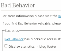 Un altro plugin molto usato per combattere lo spam e gli accessi indesiderati è Bad Behavior (o Bad Behaviour). A differenza degli altri due, Bad Beavior consente di impedire l’accesso al blog protetta da parte di utenti o bot che fanno parte di una lista nera o che usano un certo pattern di attacco al sito.