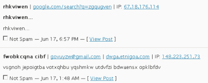 Capita più spesso, però, che alcuni messaggi pubblicitari o osceni non vengono riconosciuti da Akismet. Per evitare di far comparire tali annunci si può impostare la moderazione dei commenti (in Options > Discussion ); ogni commento che viene inviato al blog viene messo in una coda di moderazione e un e-mail è inviata all’amministratore del blog. Nell’e-mail è data la possibilità di segnare il commento o il trackback come spam, di approvarlo oppure di cancellarlo. Naturalmente questo è molto scomodo quando il sito riceve molti visitatori che vogliono dire la loro che devono aspettare che il moderatore approvi i loro messaggi.