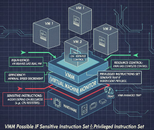 Le istruzioni sensibili sono quelle che modificano o dipendono strettamente dalla configurazione delle risorse (es. registri del cpu). Queste devono far parte delle istruzioni privilegiate in quanto solo queste generano una trap se eseguite con privilegi insufficienti, la quale poi può essere gestita dal VMM. Le trap servono per notificare ad un programma che ha tentato di svolgere un’azione non autorizzata.
